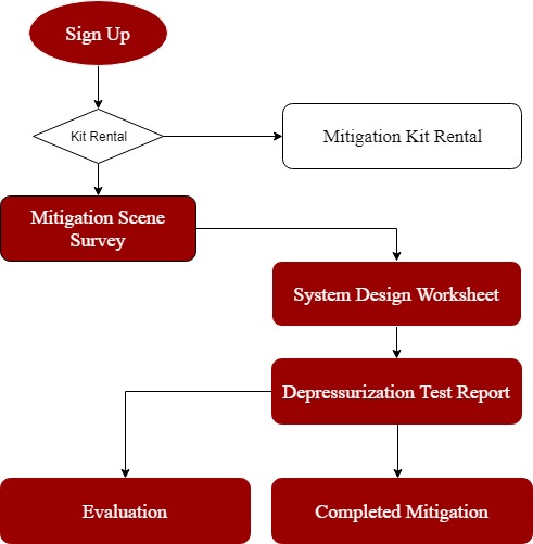 On receiving the link to the Depressurization Assessment, the Mentee can complete the form. Once the Depressurization Test Report is completed, the Mentor and Mentee will receive a pdf of the completed form with a copy of a homeowner resource from CMHC, then the Mentee will be asked to complete the Mitigation Completion form which will require the Mentee to upload pictures of the completed mitigation system. The final step in the Mentorship process will include the Mentee and Mentor completing an Evaluation Form. Separate links will automatically be emailed to the Mentor and Mentee to evaluate the C-NRPP Mitigation Mentorship Program. These evaluation forms will be kept confidential.